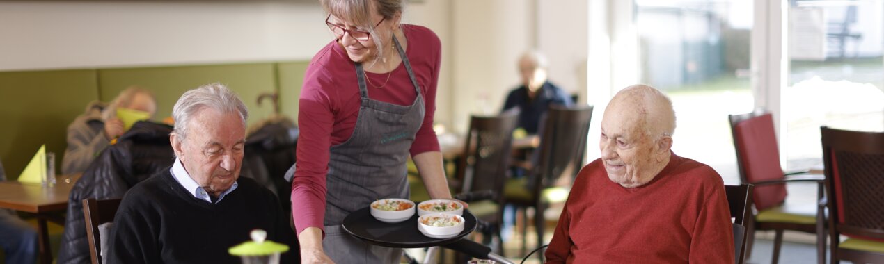 Das Café bietet Mietern des Service Wohnen, Bewohnern des Altenhilfezentrums sowie Angehörigen Freunden des Hauses und auch Wandergruppen einen Treffpunkt in gemütlicher Atmosphäre.